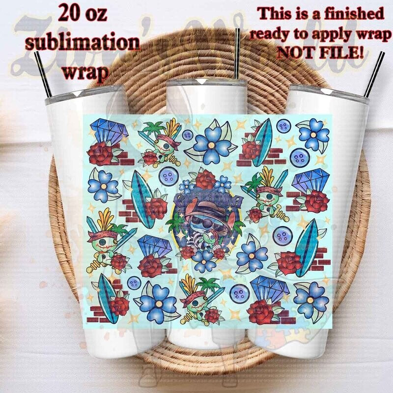 Wraps are sized for 20oz stainless steel tumbler. Application instructions listed below are to be used as a point of reference only. Temperature and time settings may differ depending on which sublimation heat press or convectional oven you use.