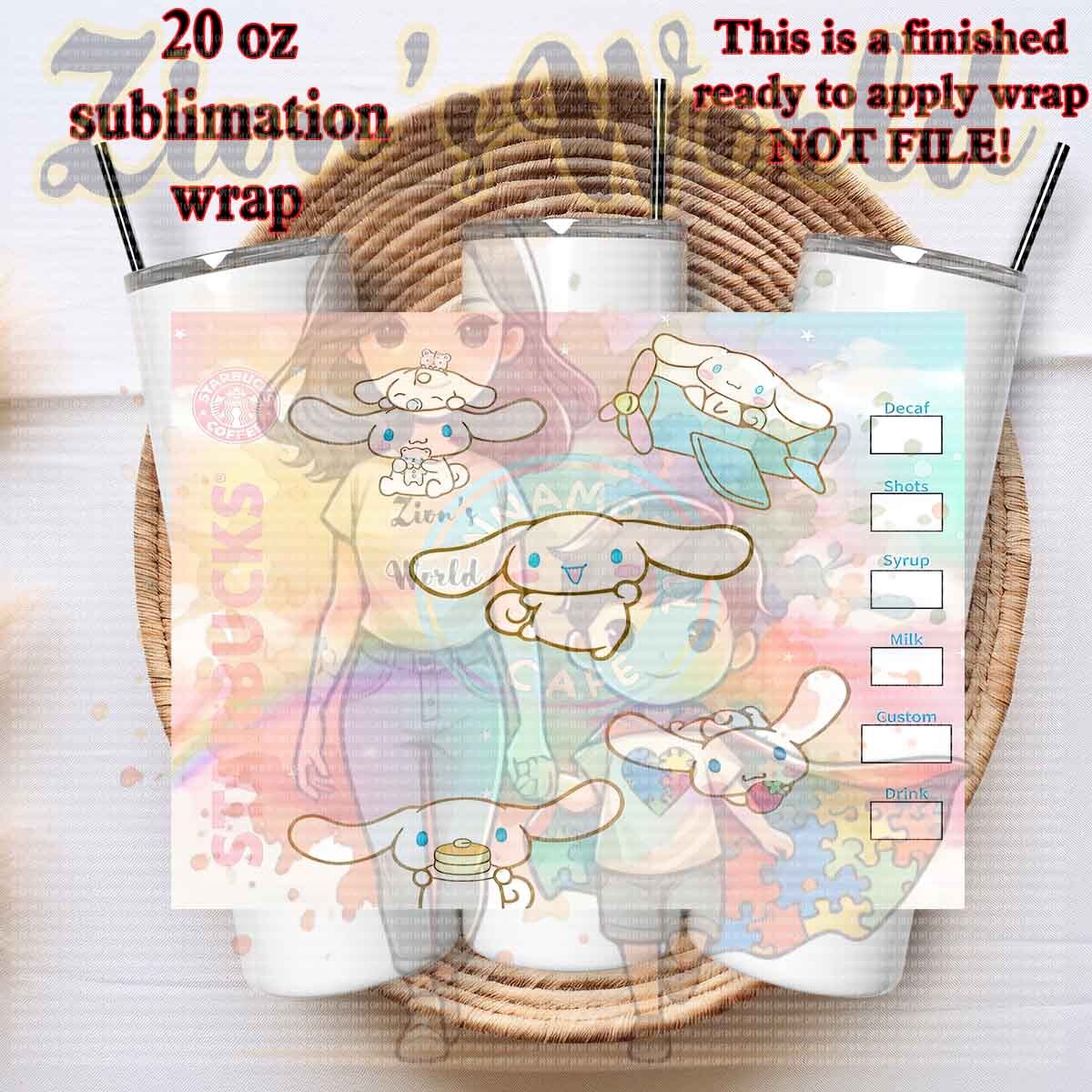 Wraps are sized for 20oz stainless steel tumbler. Application instructions listed below are to be used as a point of reference only. Temperature and time settings may differ depending on which sublimation heat press or convectional oven you use.