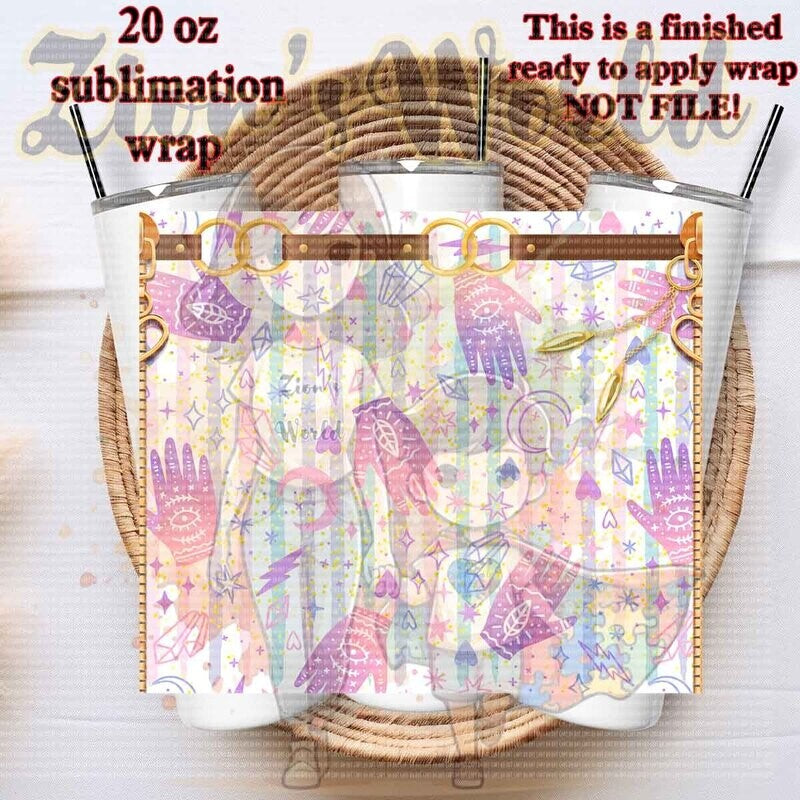 Wraps are sized for 20oz stainless steel tumbler. Application instructions listed below are to be used as a point of reference only. Temperature and time settings may differ depending on which sublimation heat press or convectional oven you use.