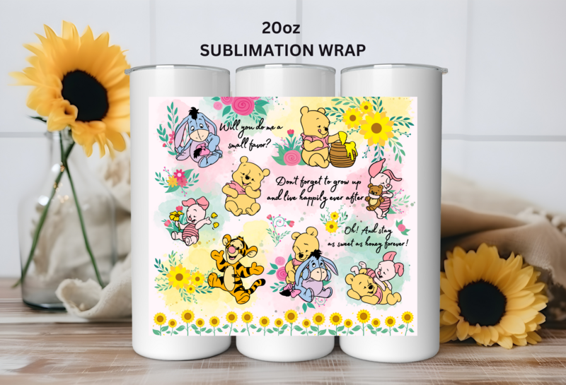Wraps are sized for 20oz stainless steel tumbler. Application instructions listed below are to be used as a point of reference only. Temperature and time settings may differ depending on which sublimation heat press or convectional oven you use.
