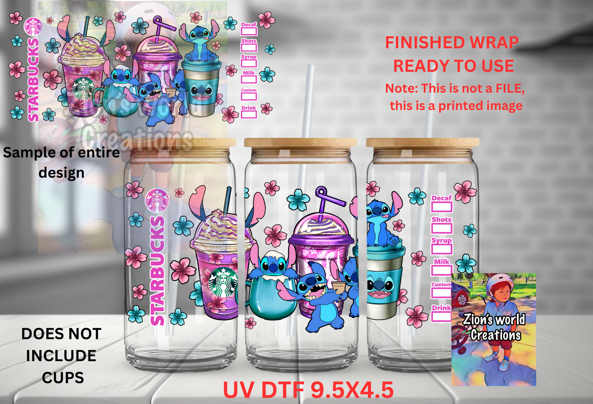 Listing is for one UV DTF Wrap (cup not included)